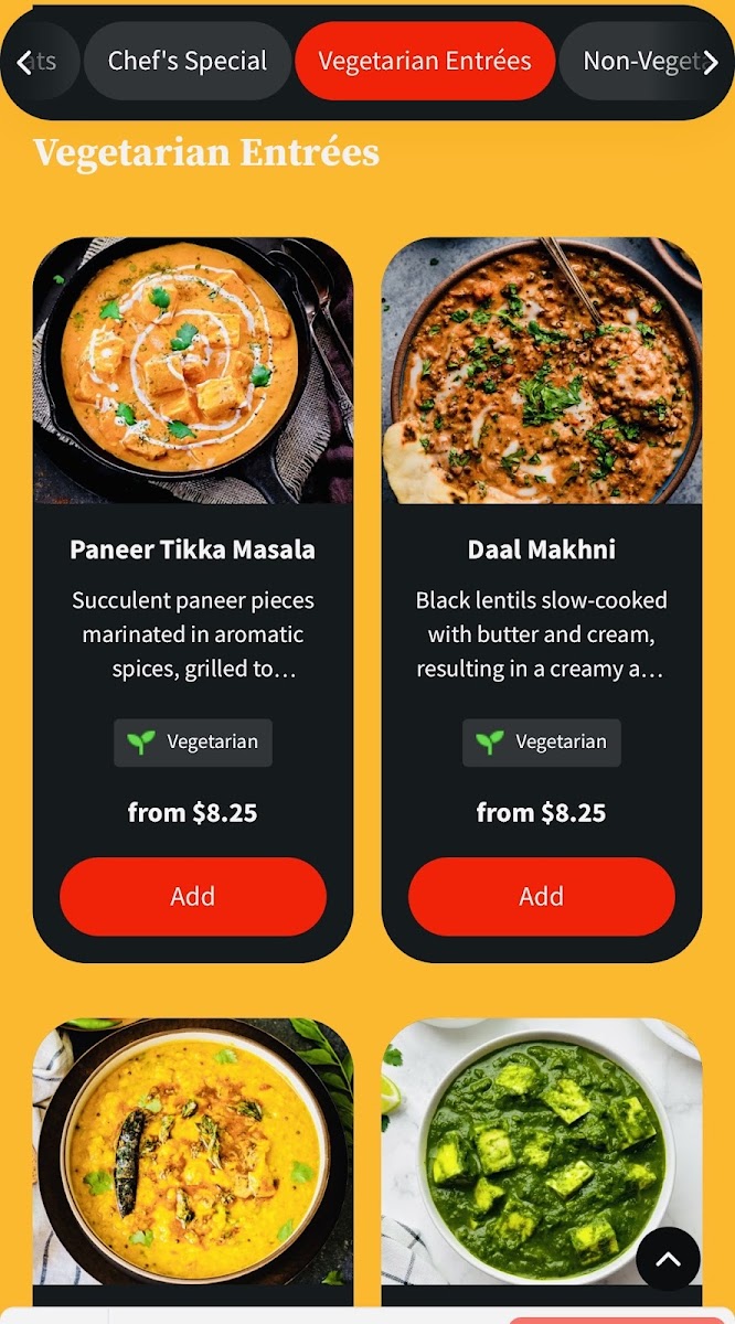 [Otter] Cafe Bollywood (102B Bellevue Way NE) [All Day] [Otter POS] 11.22.22-allda | 20250904::23:59 - Vegetarian Entrées